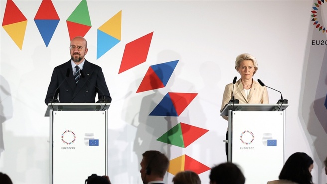 AB Konseyi Başkanı Charles Michel ve AB Komisyonu Başkanı Ursula von der Leyen, Çekya'nın başkenti Prag'daki AB Liderler Zirvesi'nin bitiminde düzenlenen basın toplantısında bir soru üzerine ABD Başkanı Joe Biden'ın "nükleer kıyamet" riskinin 1962'den beri en yüksek seviyede olduğuna dair açıklamasını değerlendirdi.