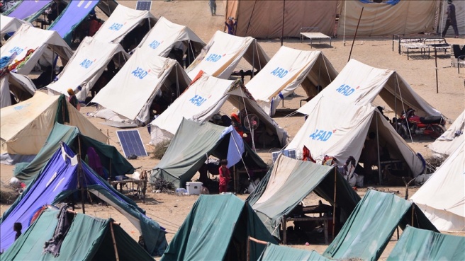 AA ekibi, başkent İslamabad'a 1180 kilometre uzaklıktaki Sehvan şehrinin Lal Bağ bölgesinde AFAD'ın çadır kurulum çalışmalarını yerinde inceledi, kamp sakinleriyle görüştü.