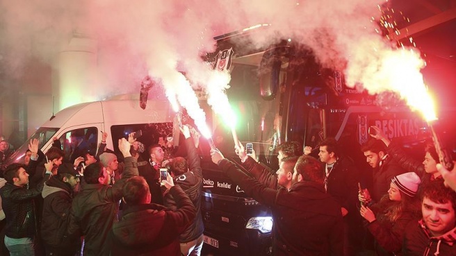 Taraftarların yoğun ilgisi nedeniyle siyah-beyazlı ekibi taşıyan otobüs, havalimanından güçlükle ayrıldı.