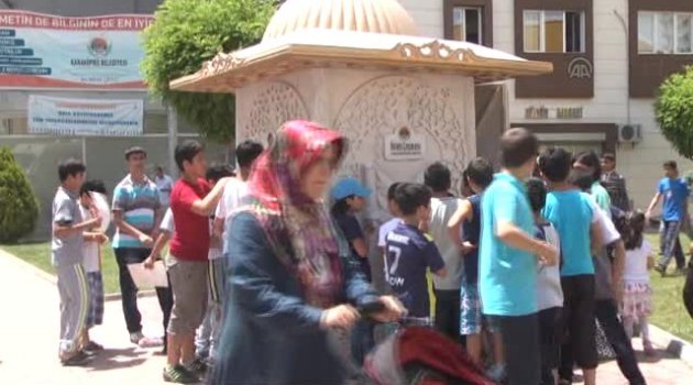GÖRÜNTÜ DÖKÜMÜ: - Çeşmenin önünde bekleyenler- Çeşmeden ikram edilen ayranı alanlar- Çeşmeden detay görüntüler- Karaköprü Belediye Başkanı Nihat Çiftçi ile röportaj- Çeşmeden ayran içinlerle röportaj Bu çeşmeden su yerine soğuk ayran akıyor- Hava sıcaklığının yaklaşık 35 dereceyi bulduğu Şanlıurfa'da vatandaşlar, ikram çeşmesinde dağıtılan soğuk ayranla serinliyor Hava sıcaklığının yaklaşık 35 dereceyi bulduğu Şanlıurfa'da vatandaşlar, ikram çeşmesinde dağıtılan soğuk ayranla serinliyor. Karaköprü Belediyesi tarafından bir süre önce hayata geçirilen "İkram Çeşmesi"nde su yerine soğuk ayran akıyor. Karşıkaya Mahallesinde hizmete giren çeşmede yazların başlamasıyla günün en sıcak saatlerinde vatandaşlara çeşmeden ayran dağıtılıyor. Karaköprü Belediye Başkanı Nihat Çiftçi, yaptığı açıklamada, bir süre önce hizmete koydukları ikram çeşmesinden vatandaşların çok memnun kaldığını söyledi.Şanlıurfa'nın, Türkiye'nin en sıcak illerinin başında geldiğini hatırlatan Çiftçi, "Kentimiz bilindiği üzere çok sıcak, bizlerde belediye olarak vatandaşların serinlemesi için böyle bir uygulama başlattık. Uygulamamız bütün yaz devam edecek. Her hafta farklı içecekler dağıtmayı planlıyoruz. Bugün milli içeceğimiz ayranı dağıttık. Kış aylarında da çorba ikram etmeyi planlıyoruz" dedi.