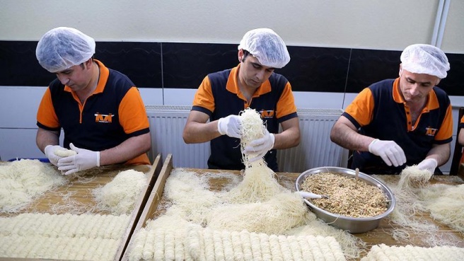 Özellikle akşam saatlerinde müşterilerin tatlıcılar önünde uzun kuyruk oluşturduğu kentte, ustalar da enerji verdiği ve tok tuttuğu bilinen kadayıf dolmasını yapmak için imalathanelerde hummalı bir çalışma yürütüyor.