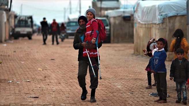 Suriye'deki iç savaşta terör örgütü DEAŞ'ın zulmünden kaçarak sığındıkları İdlib ilinde Beşşar Esed rejiminin saldırısında sol bacağını kaybeden 6 yaşındaki Esra Salih, koltuk değnekleriyle yaşaması nedeniyle döktüğü gözyaşlarının son bulması için protez bacağına kavuşacağı günün hayalini kuruyor.