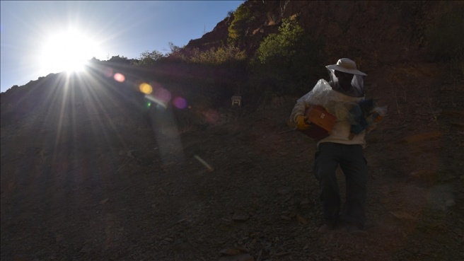 Merkeze bağlı Kırıkdağ köyünde hem çiftçilik hem de arıcılıkla uğraşan 52 yaşındaki Yiğit, yüksek rakımlı dağlarda gezerek arıların kayaların arasında yaptığı katkısız bala ulaşmak için büyük emek harcıyor.