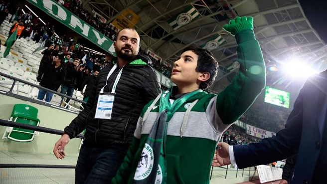 Spor Toto Süper Lig'in 17. haftasında Atiker Konyaspor ile Galatasaray arasında oynanan karşılaşmada, İzmir'deki terör saldırısında şehit olan polis memuru Fethi Sekin, unutulmadı.