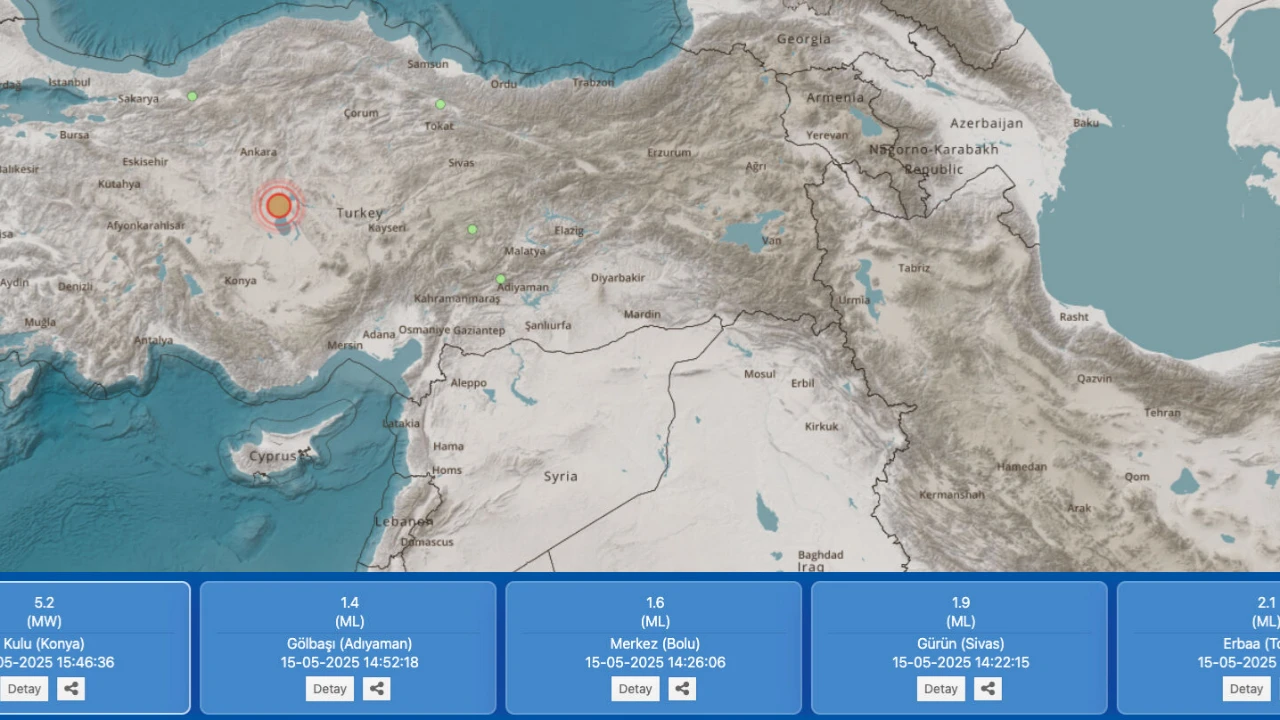 Ankara'da 15 Mayıs 2025 Perşembe günü hissedilen deprem paniğe yol açtı. Ankara'da birçok vatandaş sarsıntı nedeni ile depremin şiddetini araştırmaya başladı. Merkez üssünün Konya Kulu olduğu belirtilen deprem çevre illerde de hissedildi.