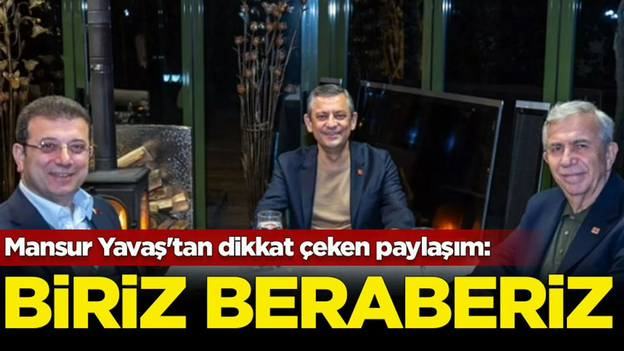 Mansur Yavaş, CHP'nin ön seçimine katılmayacak! Özel, İmamoğlu ve Yavaş bir araya gelmiştiSon olarak Özel, İmamoğlu ve Yavaş, 'Cumhurbaşkanı adayı' gündemini değerlendirmek üzere 9 Şubat'ta bir araya gelmişti. Özel, yaklaşık 3 saat süren buluşmadan bir fotoğraf paylaşarak, sosyal medya hesabından, "Birlikteyiz. Hep birlikte olacağız. Hep beraber kazanacağız. Türkiye kazanacak" yazmıştı. Yavaş, CHP'nin ön seçimine katılmama kararı almıştıMansur Yavaş, CHP'nin cumhurbaşkanı adayının belirleneceği ön seçime katılmama kararı almıştı. Yavaş, ön seçimin tek başına bir kriter olmaması gerektiğini belirterek, ön seçim yönteminin CHP içinde ayrışmaya yol açabileceği endişesi taşıdığına dile getirmişti. Mansur Yavaş, "Bizim gündemimiz açlık ve yoksulluk olmalı, insanlar perişan iktidarı biz ancak bu gündemle devirebiliriz. Bu konuda çalışma yapıp halka bozulan ekonomiyi düzeltebileceğimiz konusunda güven vermeli ve önceliğimiz bu olmalı" demişti. Özel, İmamoğlu ve Yavaş'tan 'cumhurbaşkanı adaylığı' zirvesi: Birlikteyiz, hep birlikte olacağız, hep beraber kazanacağız! |