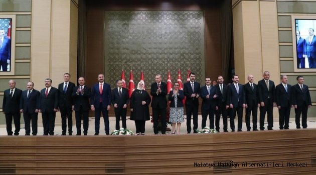 Cumhurbaşkanı Erdoğan'ın konuşmasıyla başlayacak törenin ardından akşam yemeği verilecek. Akşam yemeğinden sonra da Cumhurbaşkanı Erdoğan yeni kabinesini ve herkesin merakla beklediği bakanlarını açıklayacak. Kaç bakanlık var isimleri : Cumhurbaşkanlığı Hükümet Sistemi ile bazı bakanlıklar birleştirilerek bakanlık sayısı 26'dan 16'ya düşürüldü. Yeni yapılanma kapsamında bazı bakanlıkların da isimleri değişti. Yeni sistemdeki bakanlıkların isimleri: "Adalet Bakanlığı, İçişleri Bakanlığı, Milli Savunma Bakanlığı, Milli Eğitim Bakanlığı, Sağlık Bakanlığı, Enerji ve Tabii Kaynaklar Bakanlığı, Çevre ve Şehircilik Bakanlığı, Kültür ve Turizm Bakanlığı, Gençlik ve Spor Bakanlığı, Hazine ve Maliye Bakanlığı, Ulaştırma ve Altyapı Bakanlığı, Dışişleri Bakanlığı, Çalışma Sosyal Hizmetler ve Aile Bakanlığı, Tarım ve Orman Bakanlığı, Sanayi ve Teknoloji Bakanlığı, Ticaret Bakanlığı."