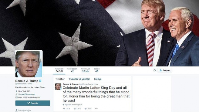 ABD Başkanlığını cuma günü devralacak Donald Trump'ın, başkanlığın resmi Twitter hesabı yerine kendi hesabını kullanmaya devam etmeyi planladığı kaydedildi.