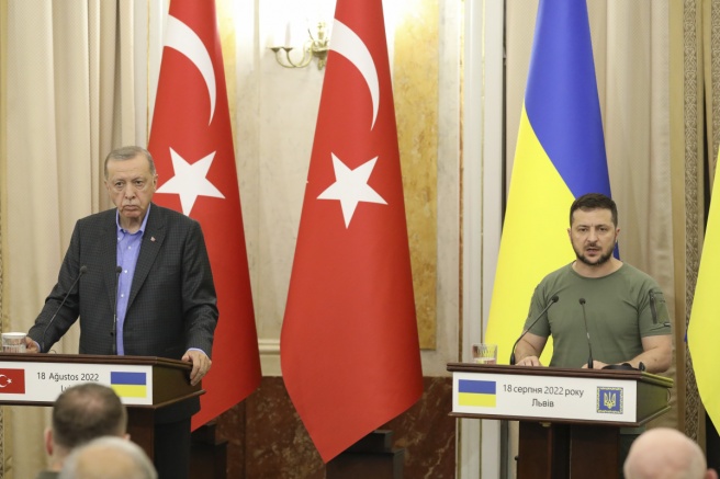 Ukrayna Devlet Başkanı Vladimir Zelenskiy, Cumhurbaşkanı Recep Tayyip Erdoğan ve Birleşmiş Milletler (BM) Genel Sekreteri Antonio Guterres ile Ukrayna'nın Lviv kentinde bulunan tarihi Potocki Sarayı'nda gerçekleştirdiği üçlü zirvenin ardından düzenlenen artık basın toplantısında konuştu. Zelenskiy, İstanbul'da yapılan tahıl anlaşmasına değinerek, Rus tarafının anlaşmaya rağmen kendilerine yönelik saldırılarını sürdürdüğünü ifade etti.